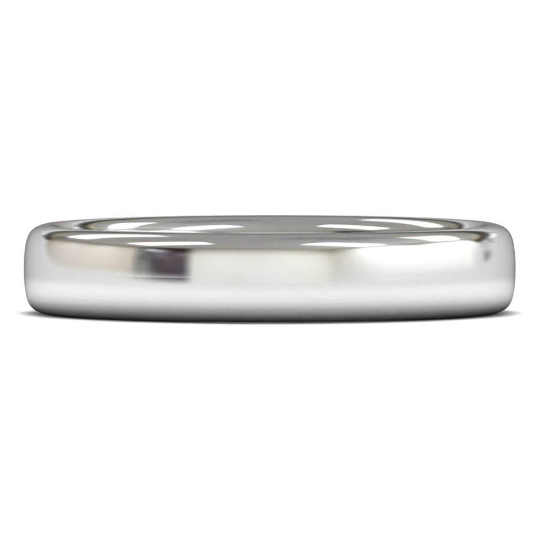 Kin and Kin 9ct White Gold 4mm Heavy Weight Slight Court Wedding Ring is a modern variation of a traditional court. This ring has a slightly rounded outside profile with a court fit on the inside. Fully rounded edges provide a comfortable fit.