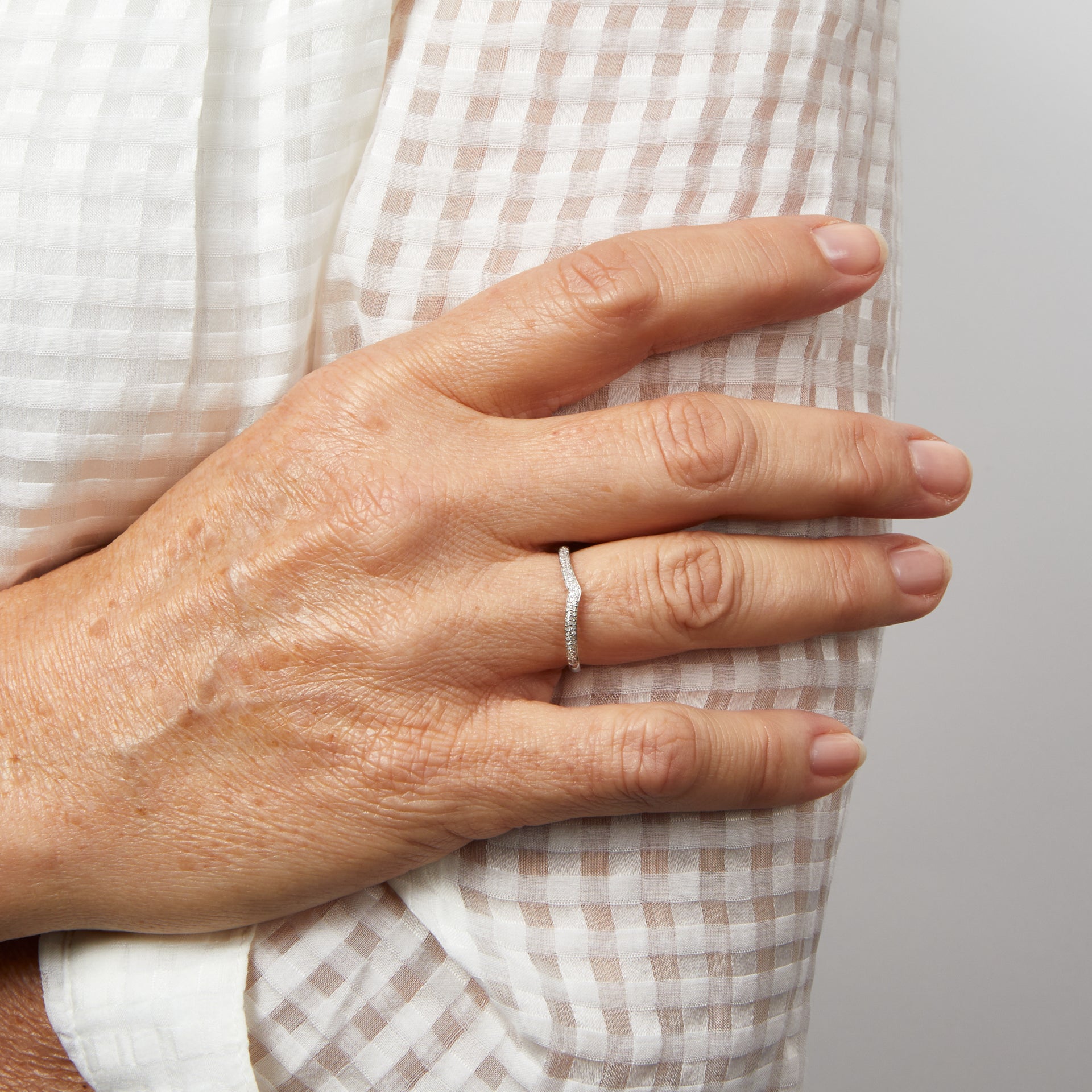 Micro Diamond Set V Shaped Ring in 9ct White Gold